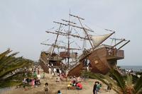 まっぷたつに割れた海賊船の遊具はアスレチックになっており迫力満点で楽しめます。遊歩道や多目的広場もあります。