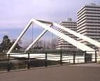 新横浜にある日産スタジアム手前の鳥山川に架かる三角形の橋。